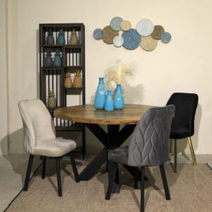 שולחן פינת אוכל עשוי עץ מנגו מלא משולב רגל מתכת מעוצבת במידות : 75*90*160 75*90*180