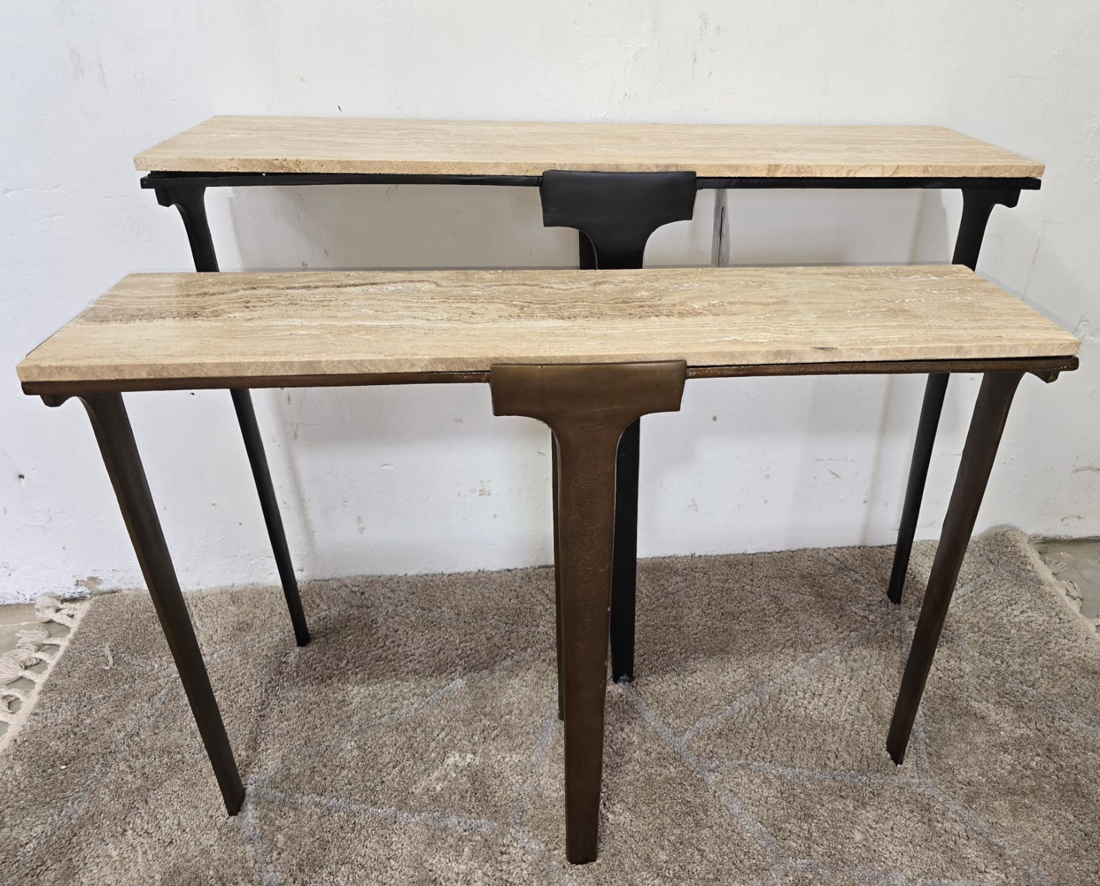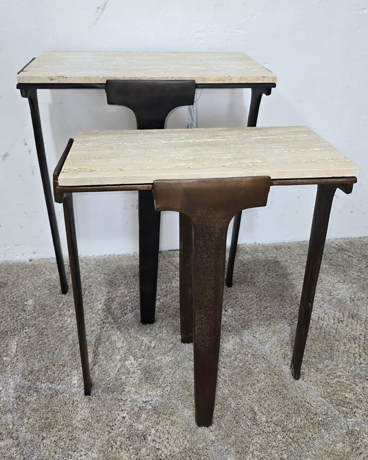 סט שולחנות דגם אבן שחור וזהב עם משטח שעשוי מאבן טרוורטין.