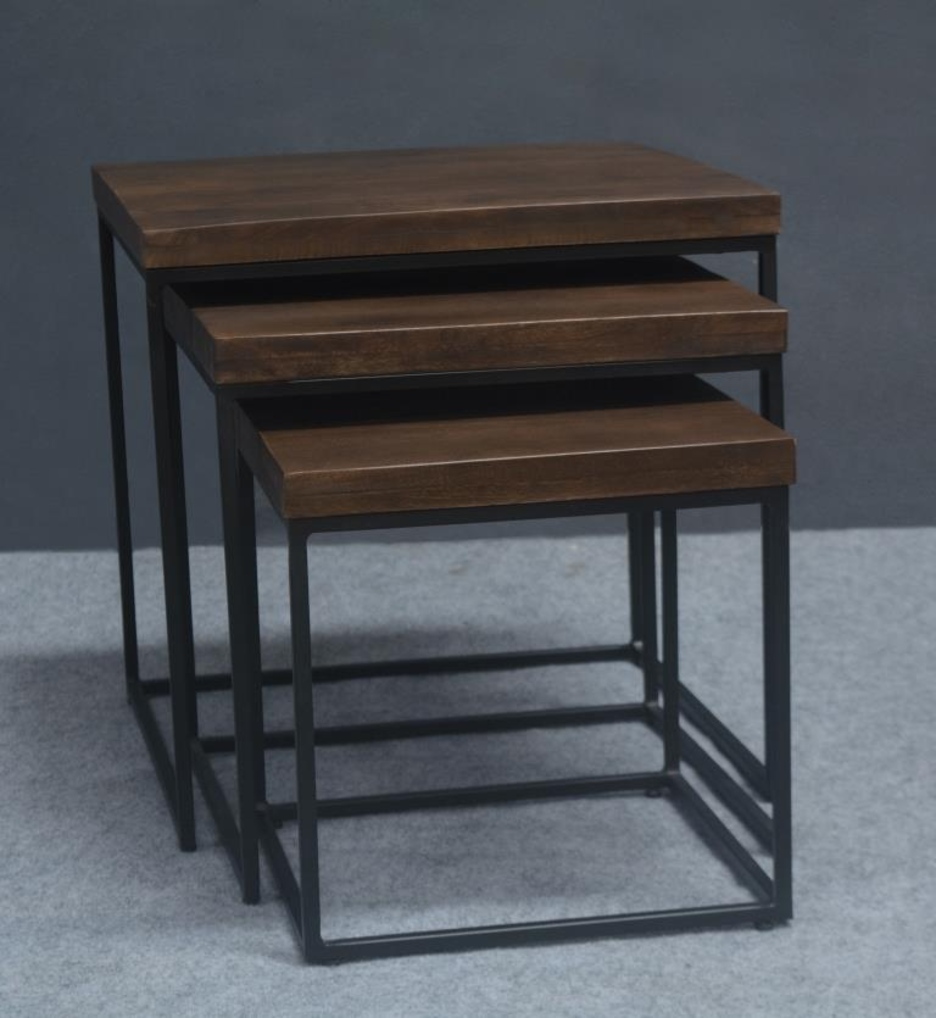 סט 3 שולחנות צד מרובע עץ מלא מנגו/אגוז משולב מתכת