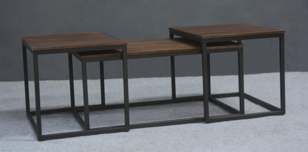 סט 3 שולחנות מלבן עץ מלא מנגו/אגוז משולב מתכת