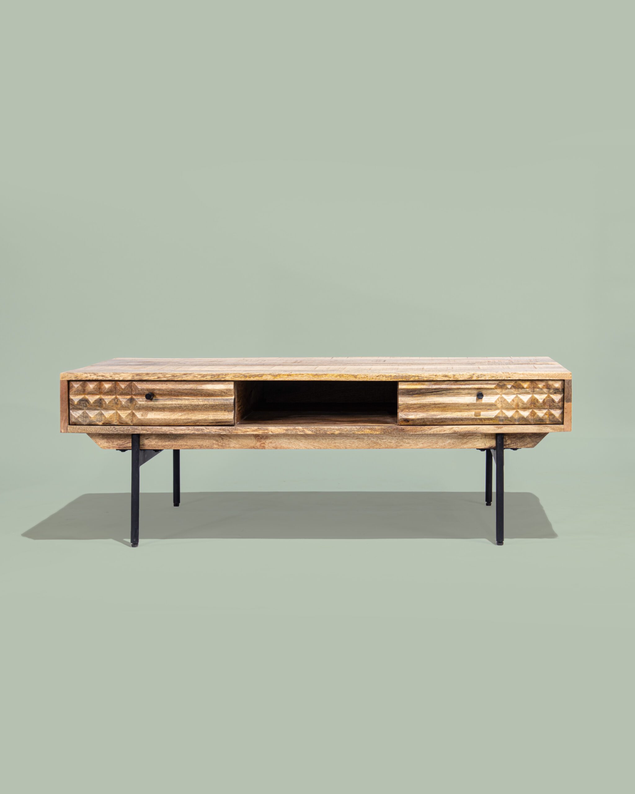 שולחן סלון עץ מנגו מלא עם 2 מגירות ומקום איחסון