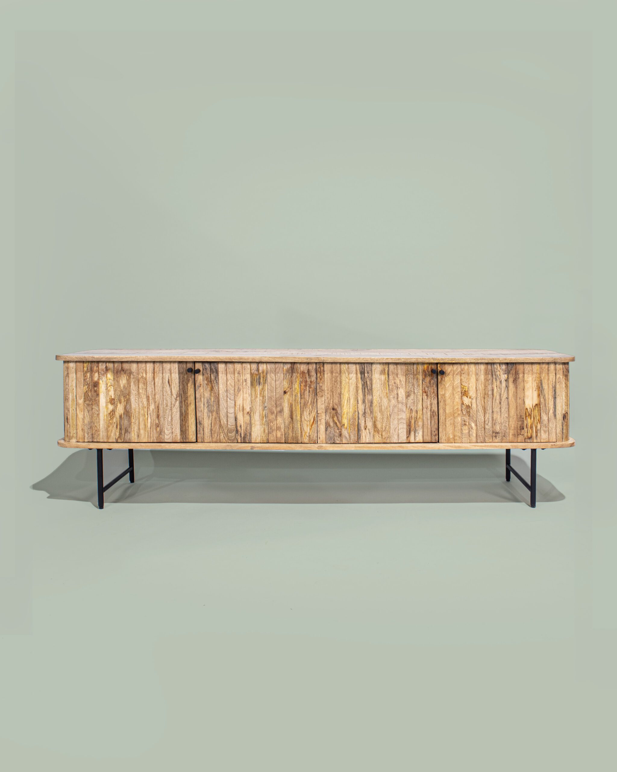 מזנון עץ מנגו מלא עם 4 דלתות עם שילוב רגליי מתכת
