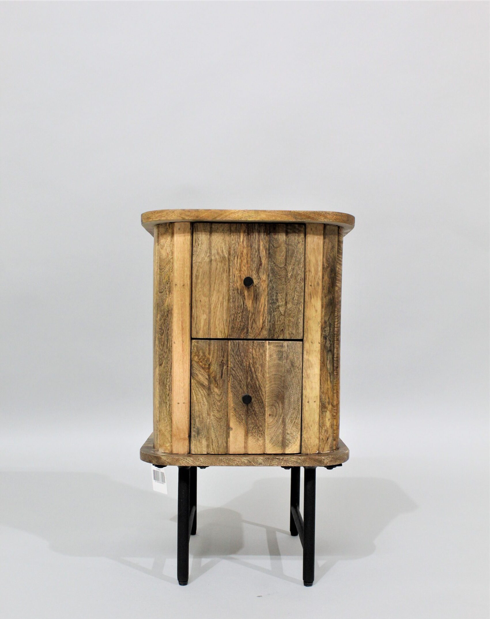 שידה 2 מגירות עץ מנגו מלא משולב רגליים מתכת
